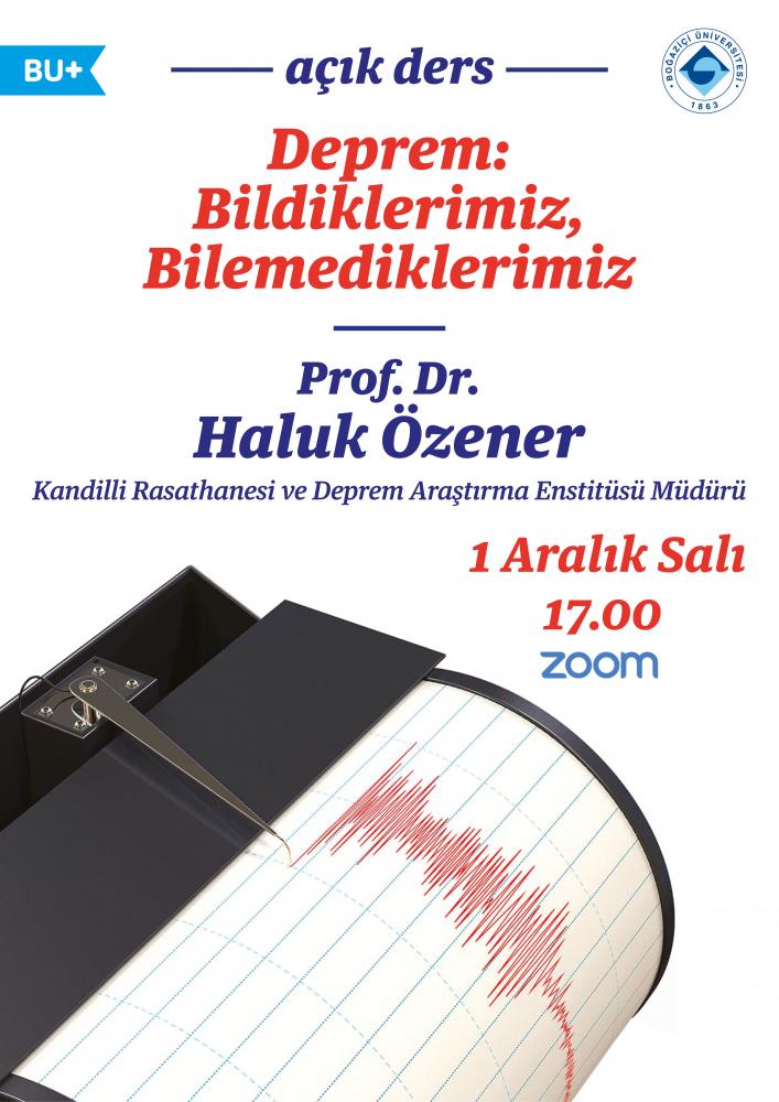 Prof. Dr. Haluk Özener BU+ Açık Ders Etkinlikleri kapsamında Kandilli Rasathanesi’nin kısa tarihini, depreme neden olan oluşumları, nerelerde deprem olduğunu, fay hatları ve fay çeşitlerini, Türkiye’de deprem gözlemlerini tartışmaya açıyor. Depremler nasıl izleniyor? Depremler artıyor mu? Depremler önceden bilinir mi? gibi soruların cevaplarının irdeleneceği etkinlik; ülkemizde gerçekleşen deprem istatistikleri, KRDAE tarafından gerçekleştirilen güncel deprem araştırmaları, deniz tabanı gözlemleri ve deprem erken uyarı sistemleri hakkında genel bilgiler vermeyi amaçlıyor.Haluk Özener:Prof. Dr. Haluk Özener, lisans eğitimini İstanbul Teknik Üniversitesi (İTÜ) Jeodezi ve Fotogrametri Mühendisliği Bölümünde 1988 yılında tamamladıktan sonra Master ve Doktora derecelerini Boğaziçi Üniversitesi’nden almıştır. Doktora Çalışması sırasında ve sonrasında Massachusetts Teknoloji Enstitüsü (MIT), Yer, Atmosfer ve Gezegen Bilimleri Bölümü ve Yer Kaynakları Laboratuvarı’nda misafir araştırmacı olarak bulunmuştur.Akademik kariyerine 1989 yılında BÜ, Kandilli Rasathanesi ve Deprem Araştırma Enstitüsü’nde (KRDAE) araştırma görevlisi olarak başlamıştır. 2003 yılında doçent olmuş ve 2005-2007 yılları arasında KRDAE Jeodezi Anabilim Dalı Başkanlığı yapmıştır. 2007-2009 arasında İTÜ Geomatik Mühendisliği Bölümü’nde çalıştıktan sonra 2009 yılında Boğaziçi Üniversitesi’ne profesör unvanı ile geri dönmüştür. 2010-2015 yılları arasında KRDAE Müdür Yardımcısı olarak görev yapan Drof. Dr. Haluk Özener, 2010 yılından beri Jeodezi Anabilim Dalı Başkanı ve 2015 yılından itibaren de KRDAE Müdürü olarak görev yapmaktadır.