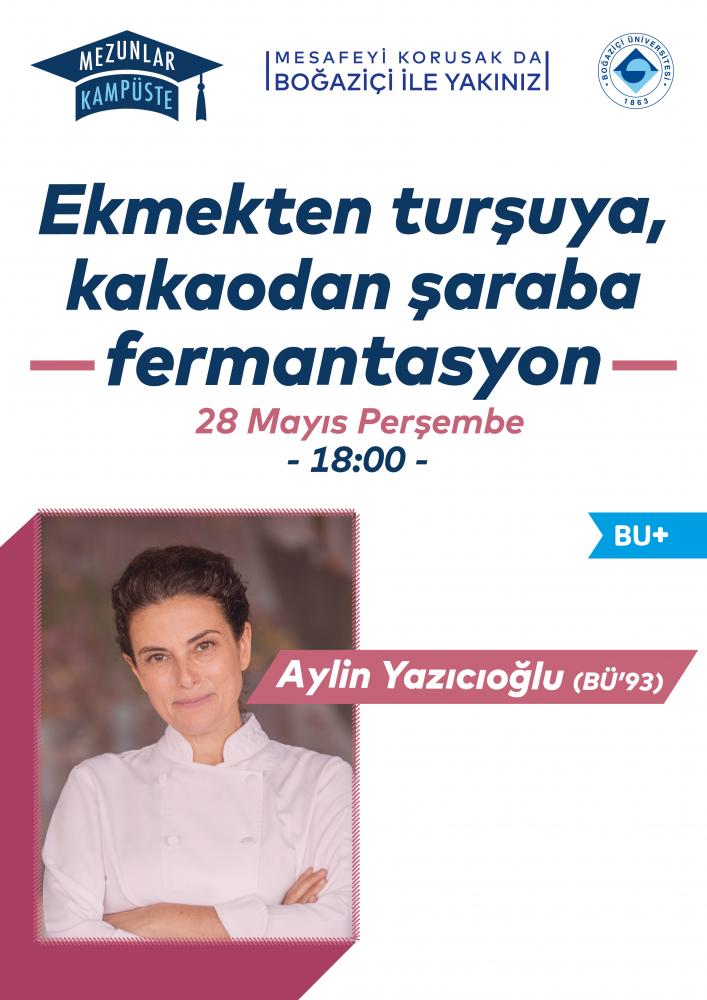 28 Mayıs Perşembe günü gerçekleşecek 'Ekmekten turşuya, kakaodan şaraba fermantasyon' etkinliğimizde mezunumuz Aylin Yazıcıoğlu'nu konuk ediyoruz.