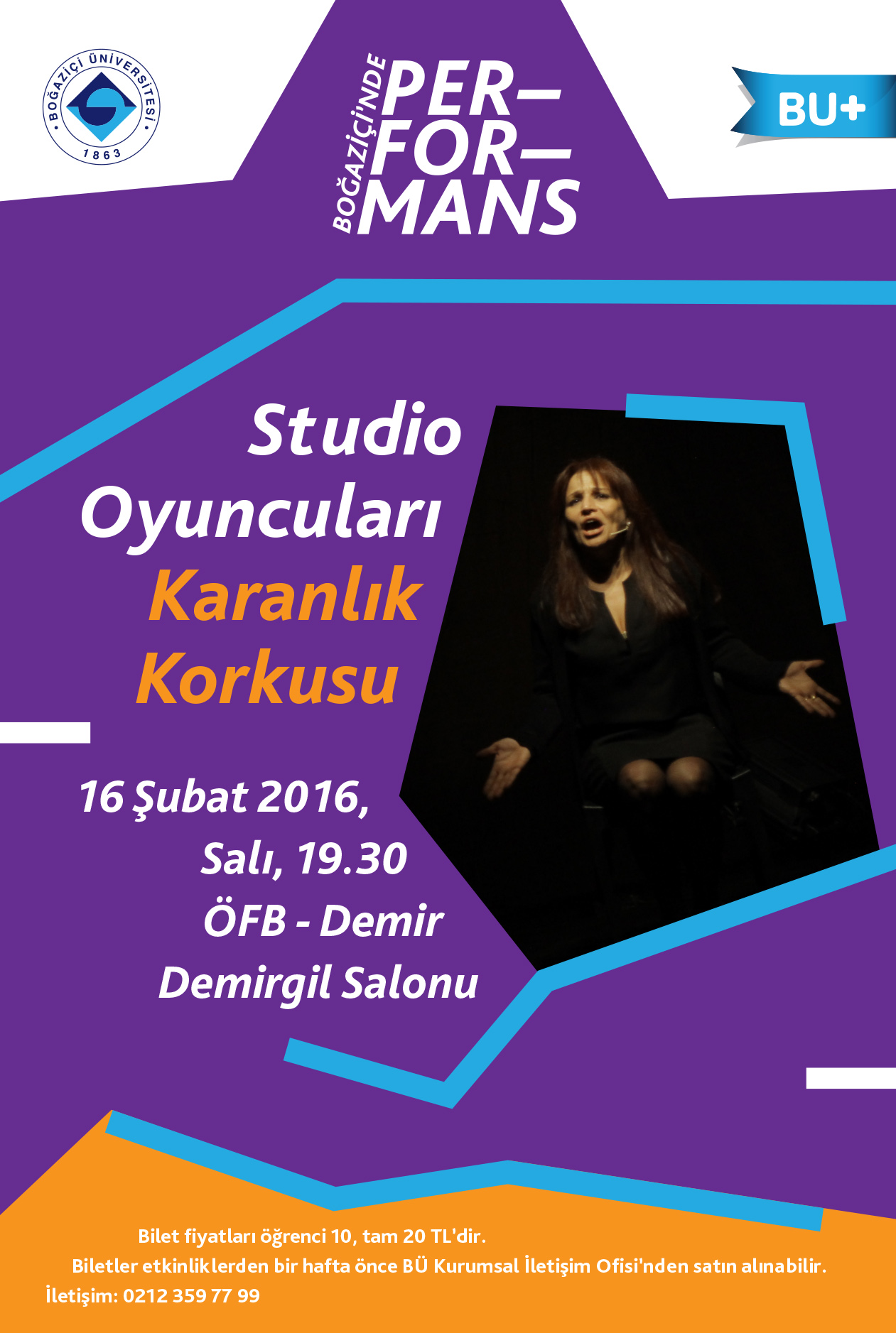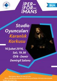 Boğaziçi Üniversitesi BÜ+ etkinlikleri çerçevesinde düzenlenen ‘Boğaziçi’nde Performans’ın ikinci konuğu 16 Şubat’ta ‘Karanlık Korkusu’ ile Studio Oyuncuları olacak