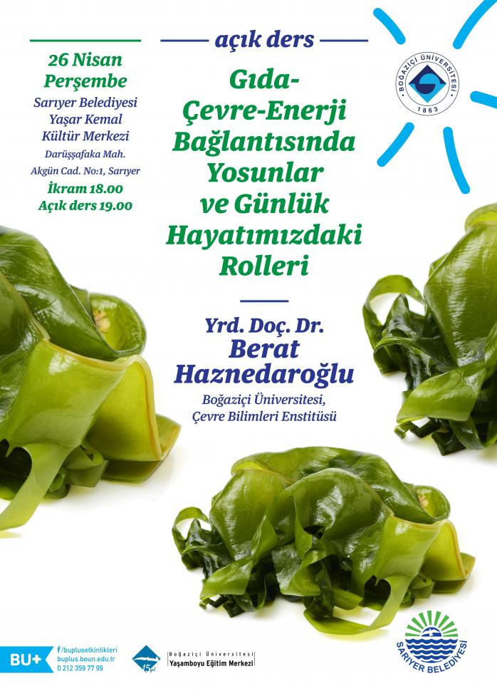 Mayalar ve Azteklerin besin olarak tükettiği yosunlar modern çağın yeni süper gıdası olarak görülmektedir. Boğaziçi Üniversitesi Çevre Bilimleri Enstitüsü'nde yardımcı doçent doktor olarak görev yapan Berat Haznedaroğlu, BU+ Açık Ders Etkinlikleri kapsamında; biyoyakıt, gıda, ilaç ve günlük yaşamımızdaki birçok alanda kullanılan yosunların küresel iklim değişikliği ile olan mücadelede insanlara nasıl yardımcı olabileceğini tartışıyor.
