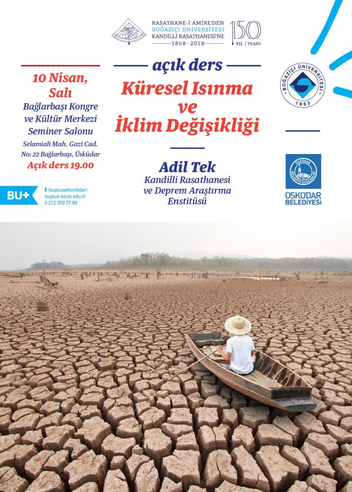 BU+ Açık Ders Etkinlikleri kapsamında son yüzyılın en önemli çevre sorunlarından küresel ısınmanın mekanizmalarını, nedenlerini yalın ve basit bir şekilde ele alan Adil Tek, küresel ısınmanın sonuçlarının iklim üzerinde nelere sebebiyet verdiğini irdelemeyi amaçlıyor.